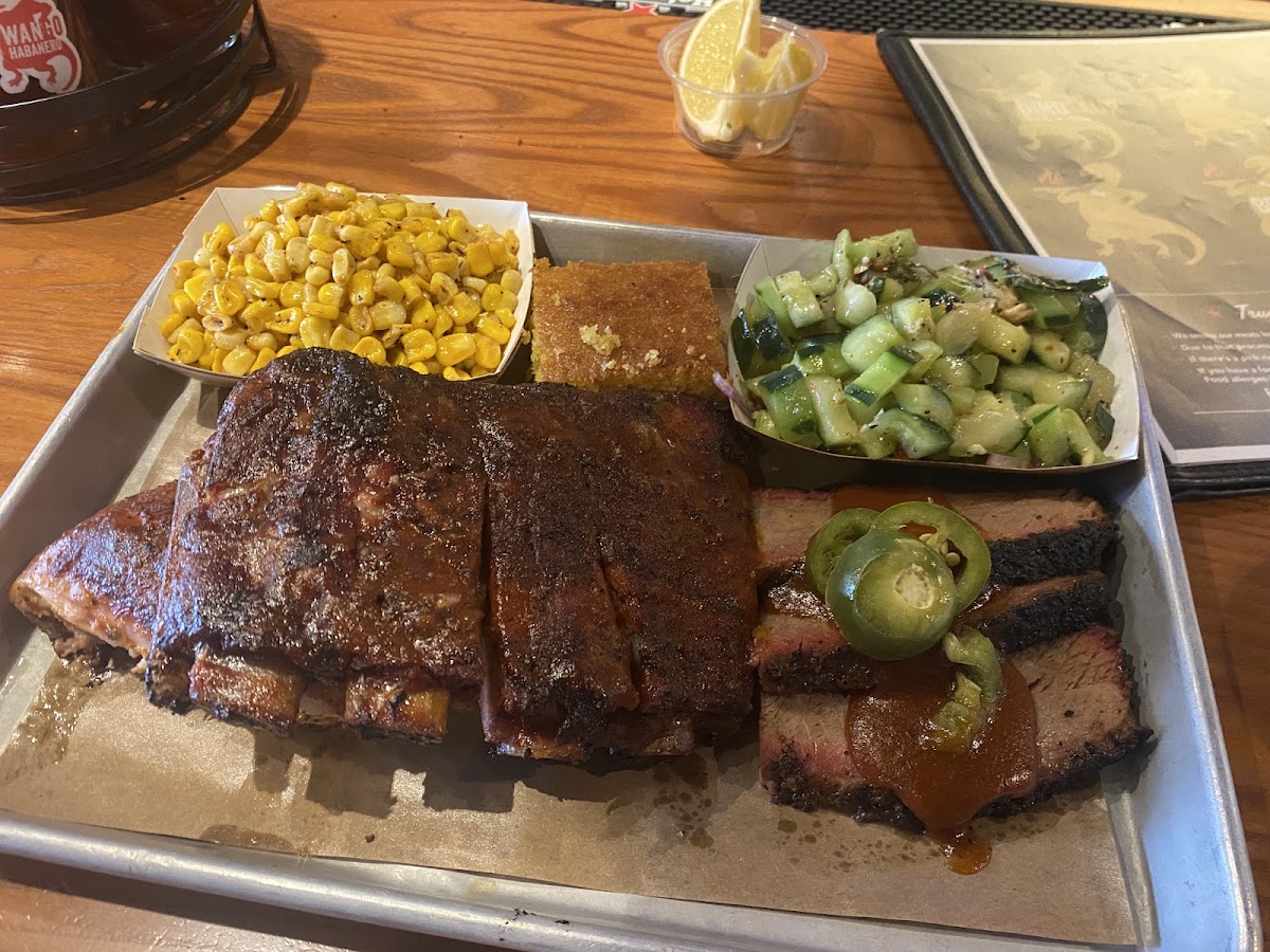 The menu offers crowd-pleasers like the Premium Brisket Plate, combos featuring brisket, pork belly, ribs, and sausage, as well as inventive sides like Creole deviled eggs, fried green tomatoes, and Dino poutine. There’s also an array of cocktails and local beers such as Kolsch that complement the bold flavors of the BBQ. The portions tend to satisfy most, though some visitors find the combo plates leave a little room for a late-night snack.